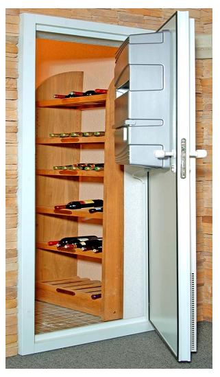 Дверь-кондиционер для винного погреба WineMaster PC15 помимо обеспечения оптимальной теплоизоляции, служит кондиционером для винного погреба объемом до 15 м3. У этого товара 2 в 1 (дверь и встроенный кондиционер), много преимуществ: экономия места, высокие показатели работы и эстетичный внешний вид.