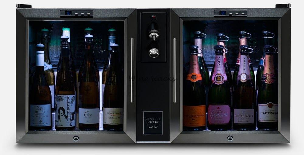 Серия Pod Bar включает в себя винные шкафы для демонстрации и охлаждения вина до необходимой температуры. Сопла имеют светодиодную подсветку, которая может самостоятельно меняться, привлекая внимание клиентов.