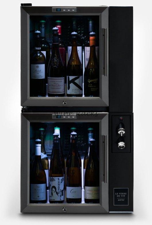Серия Pod Bar включает в себя винные шкафы для демонстрации и охлаждения вина до необходимой температуры. Сопла имеют светодиодную подсветку, которая может самостоятельно меняться, привлекая внимание клиентов.