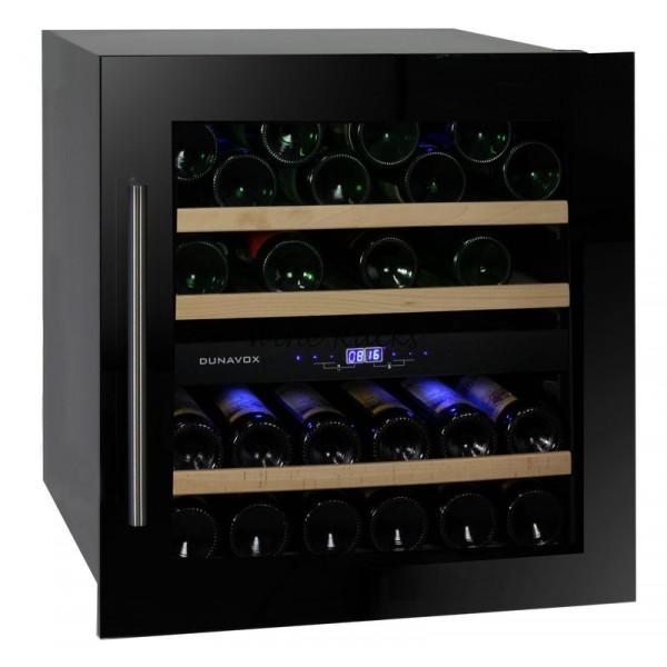 Винный шкаф Dunavox DAB-36.80DB - компрессорный встраиваемый винный шкаф на 36 бутылок с двумя  зонами охлаждения, черной стеклянной дверью и удобной накладной ручкой.