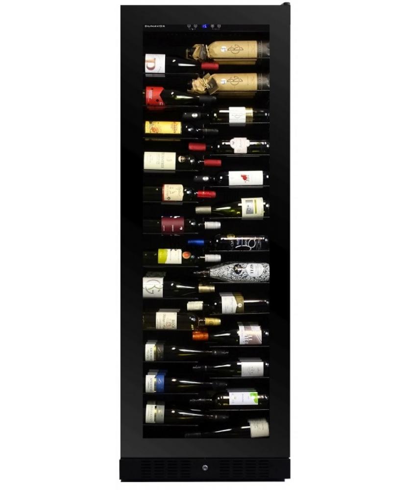 Винный шкаф Dunavox DX-143.468B - эксклюзивный компрессорный винный шкаф для дома, расчитанный на 143 бутылки с одной зоной охлаждения, с сплошной стеклянной дверью. Элегантный дизайн шкафа, оригинальное размещение полочек, возможность абсолютной презентации, особенно популярен в современных ресторанах и домах.