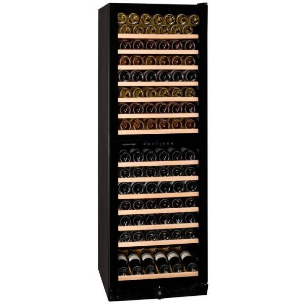 Винный шкаф Dunavox DX-166.428DBK - компрессорный винный шкаф для дома на 166 бутылок с двумя зонами охлаждения и черной стеклянной дверью.