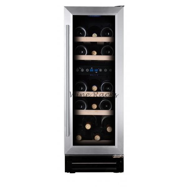Винный шкаф Dunavox DX-17.58SDSK/DP - встраиваемый компрессорный винный шкаф для дома на 17 бутылок с 2 зонами охлаждения со стеклянной дверью в рамке из высококачественной нержавеющей стали. СНЯТ С ПРОИЗВОДСТВА! Заменен на модель Dunavox DAU-17.57DSS