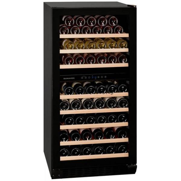 Винный шкаф Dunavox DX-94.270DBK - компрессорный винный шкаф на 94 бутылки с двумя зонами охлаждения и черной стеклянной дверью.