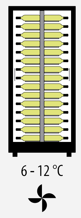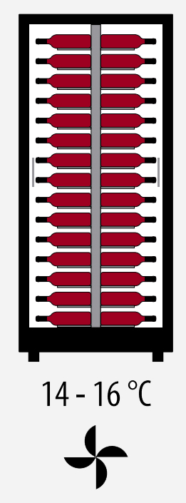 Линия Cornice Vino оснащена инновационной системой охлаждения на основе расположения охлаждающего элемента по центру винного шкафа.