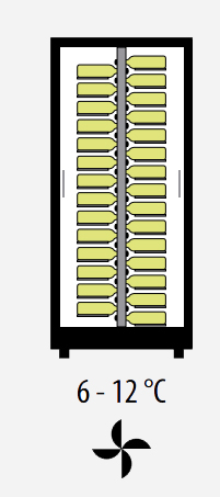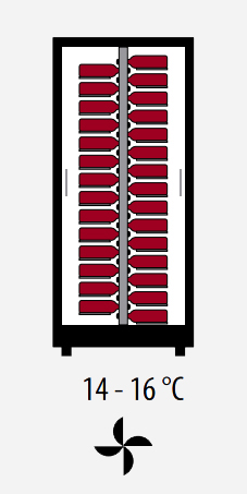 Линия Cornice Vino оснащена инновационной системой охлаждения на основе расположения охлаждающего элемента по центру винного шкафа.