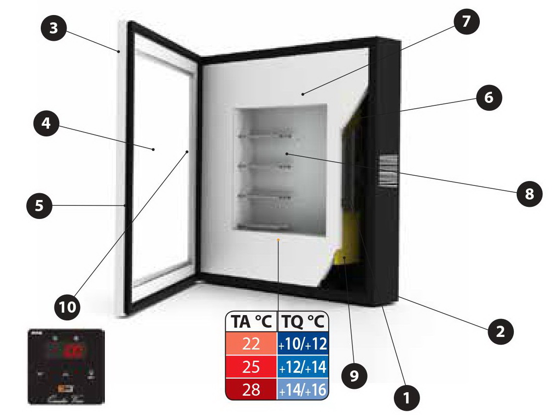 Стенд охлаждается при помощи бесшумной и вентилируемой системы, охлаждение снабжено функцией автоматической разморозки, которая не требует технической поддержки.