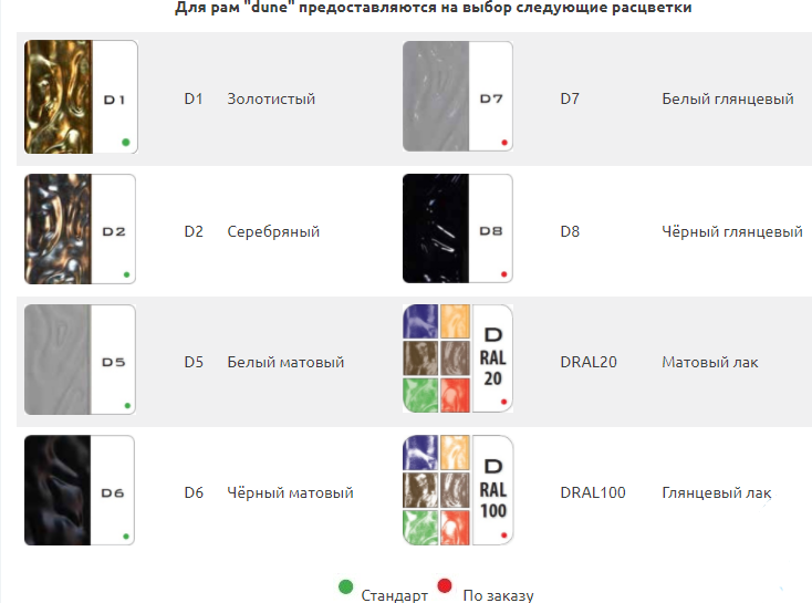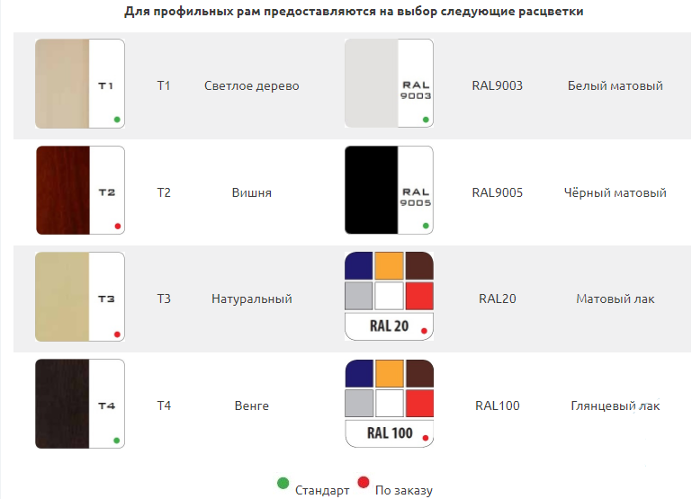 Цветовые характеристики (влияют на цену витрины)