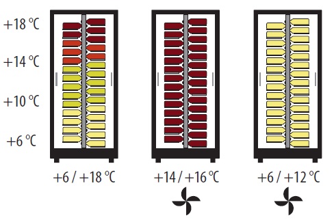 Режим температур устанавливается от шести до восемнадцати градусов выше нуля. Этого диапазона вполне достаточно, чтобы правильно хранить все возможные винные сорта.