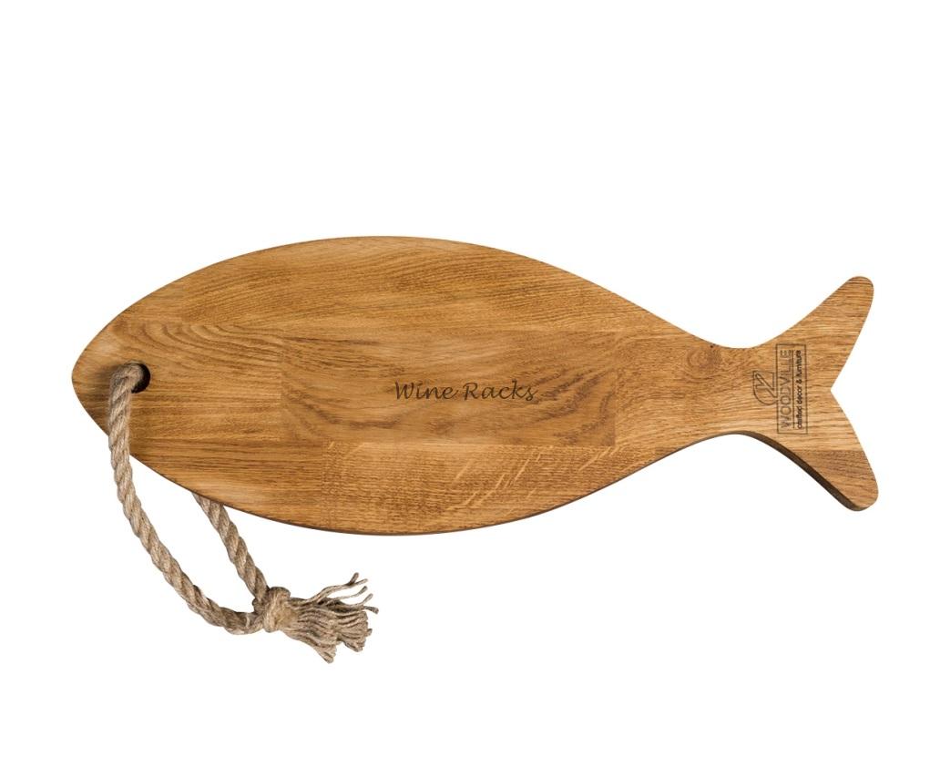Доска в форме рыбы вырезана из древесины дуба (дубовый мебельный щит), отличающегося своей прочностью и водостойкостью.